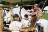 und Bine zum Aufbauen auf das Gelände. Als alles aufgestellt ist, kommt auch Martin. Mane hat wieder seine Schmiede dabei. Wir haben einen sehr großzügigen Platz, gegenüber der “Dracheneiche”