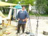 von der Dracheneiche bauen mit Hilfe von Solly ihr Zelt auf. Das Lager steht und so kann uns leichter Nieselregen nicht schrecken. Am Mittwochwoch ist das Wetter gemischt (am Abend haben wir eine Schaffkopfrunde mit zwei Freunden von Bernd) und der “Vatertag”, der Donnerstag, ist nur Sonne und heiß. Wir können uns vor besuch kaum retten und unser Armbrust-Schießstand wird von Kindern und Erwachsenen belagert. Sie reissen uns die Armbrust förmlich aus der Hand!
