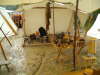 Sie haben keinen trockenen Platz mehr zu Sitzen und üben sich im Grabenbauen. Es sieht aus wie in einem Goldgräbercamp! Wir lassen sie bei uns sitzen, dann haben sie wenigstens trockene Füße. Freitag ist nur Regen