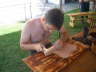 Besonders schön sind seine selbstgefertigten Pfeile. Es ist ein Genuß sie anzusehen und damit zu schießen. Er hat auch ein Talent andere in seine Künste einzuweihen.